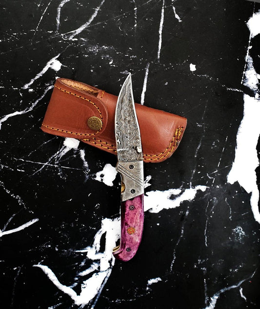Titan Classico Viola- Raindrop Damascus Folding Blade/ EDC/
