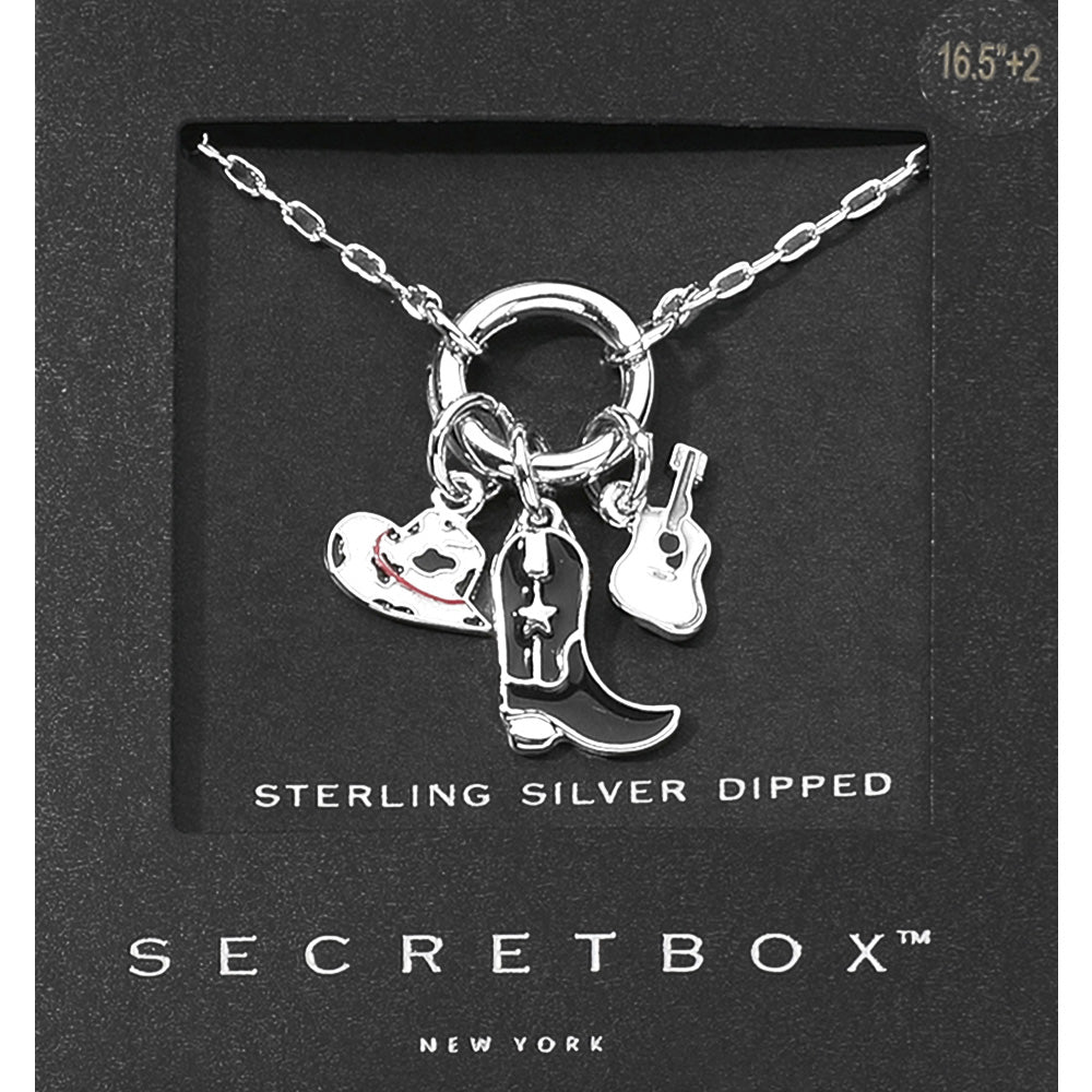 Silver Dipped Enamel Cowboy Hat Boot Guitar Pendant Necklace