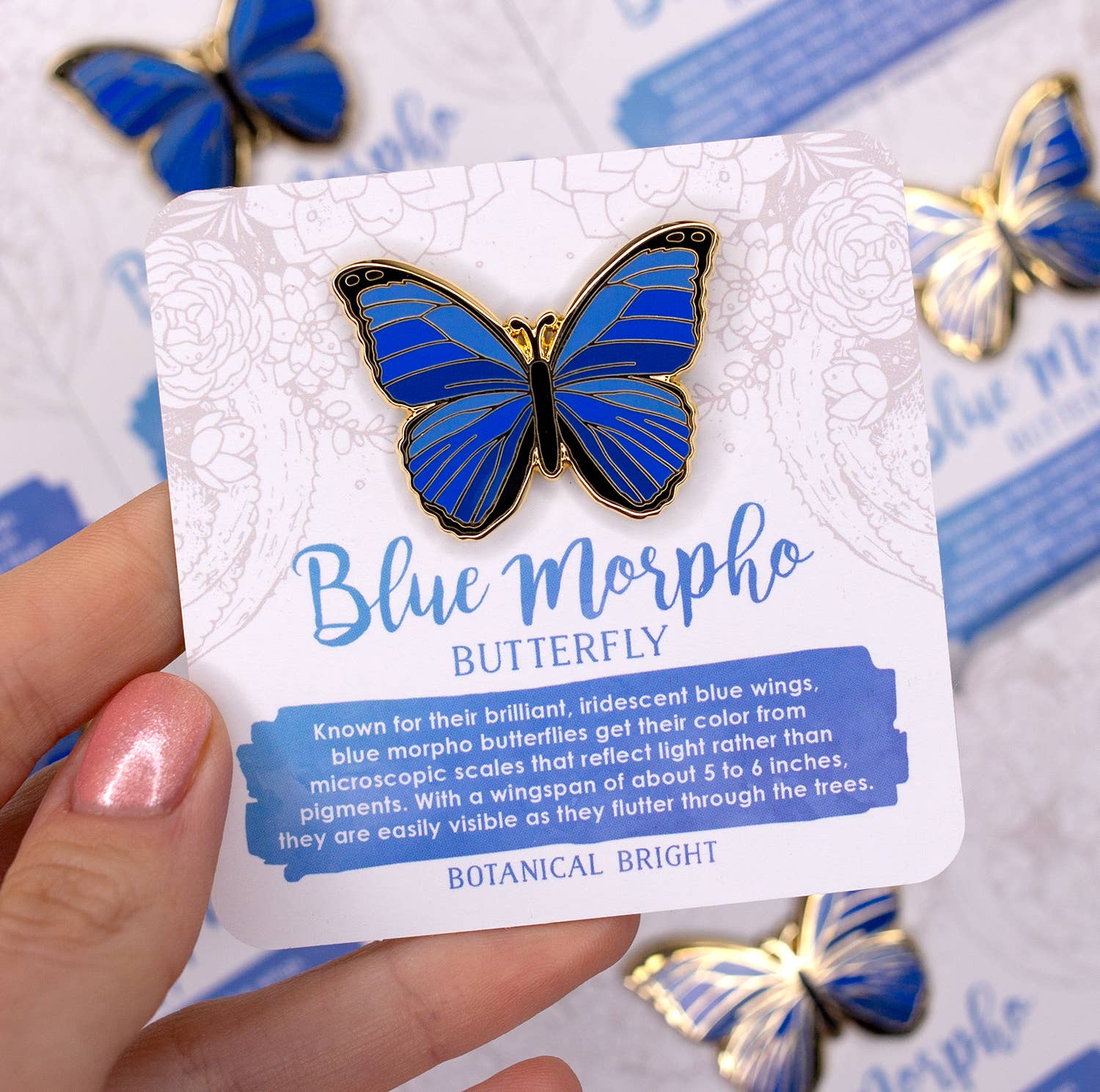 This particular pin design was inspired by Blue Morpho Butterflies!