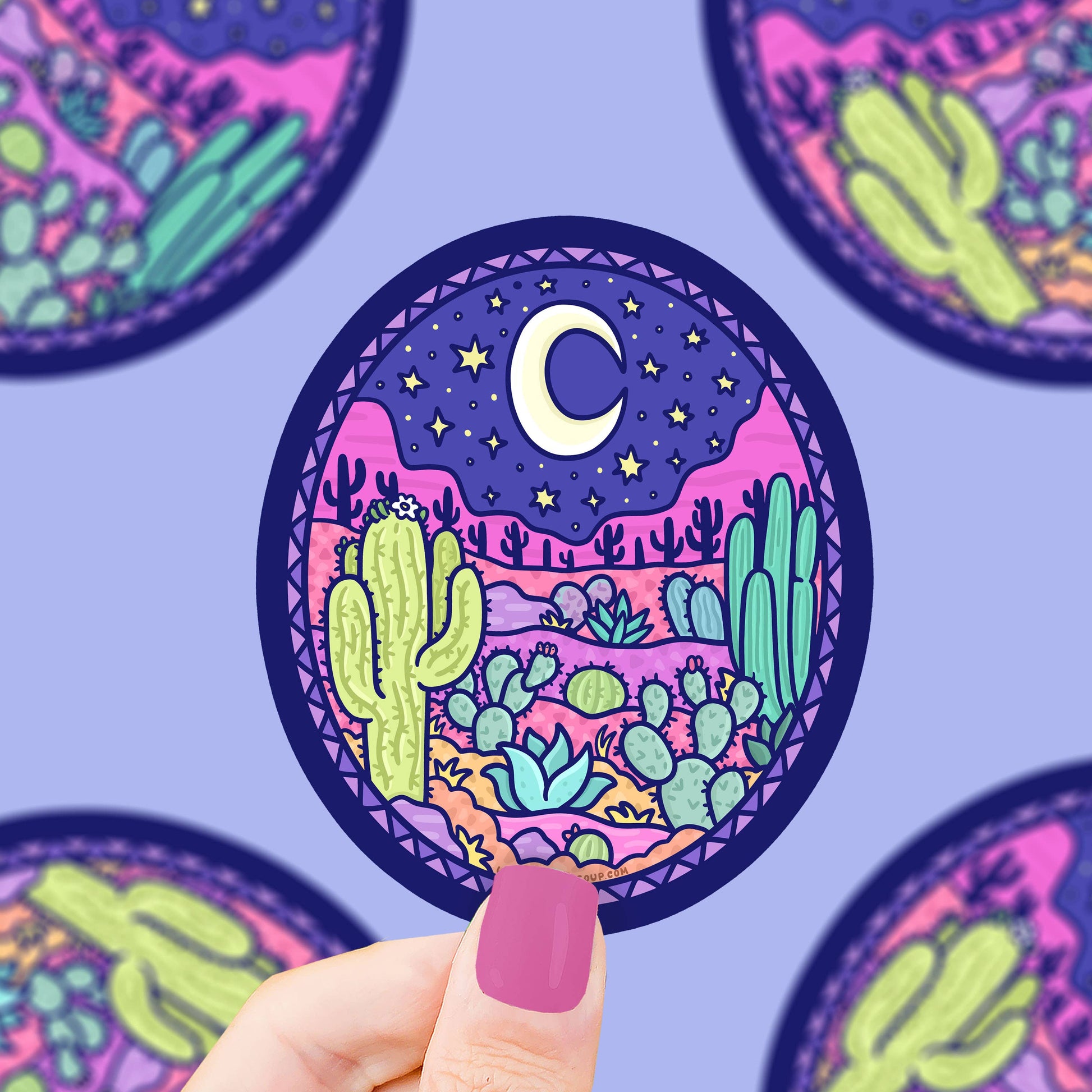 Desert Night Scene' vinyl sticker by Turtle's Soup. 🐢 Most stickers are approximately 3 inches by 3 inches. 🐢Our Turtley Awesome vinyl stickers are made from the highest quality ingredients on the market! Printed on thick, ultra durable vinyl, these stickers are made to last. 🐢Stick them on water bottles, laptops, cars, coolers, helmets, skateboards, or just about any flat surface you can think of. 🐢 Copyright © 2024 Turtle's Soup. All Rights Reserved.