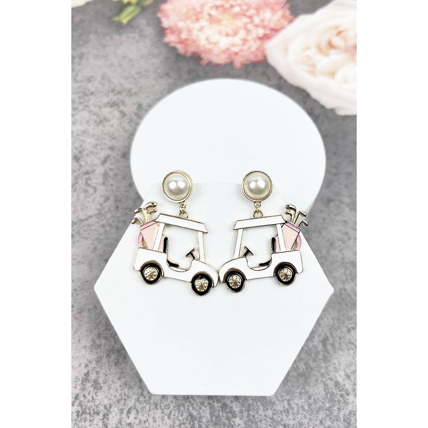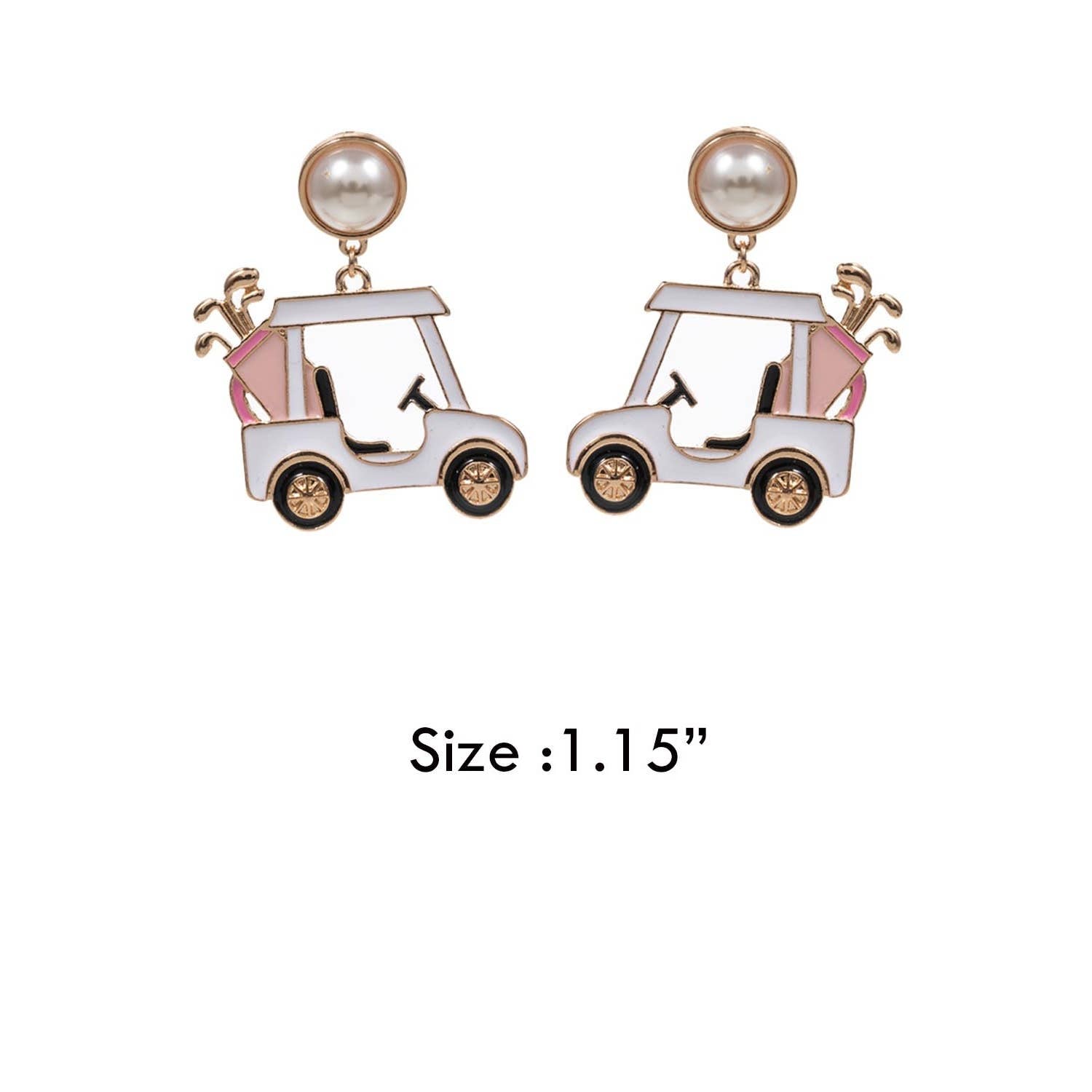 GOLF CART SHAPED WITH PEARL ENAMEL POST EARRING