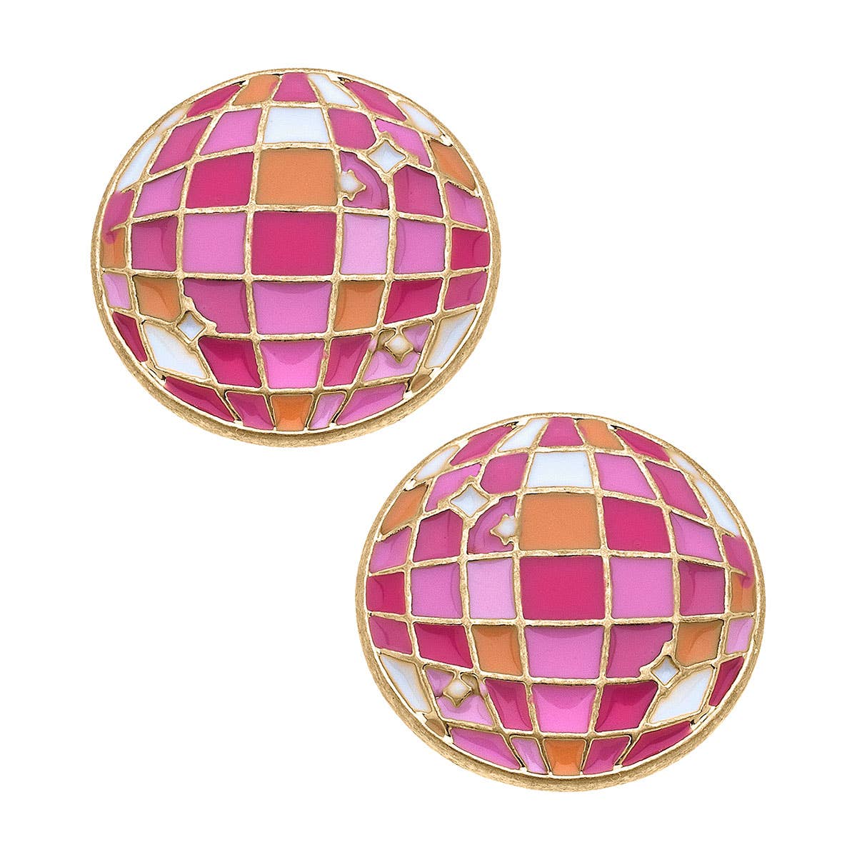 Rodeo Disco Ball Enamel Stud Earrings in Multi