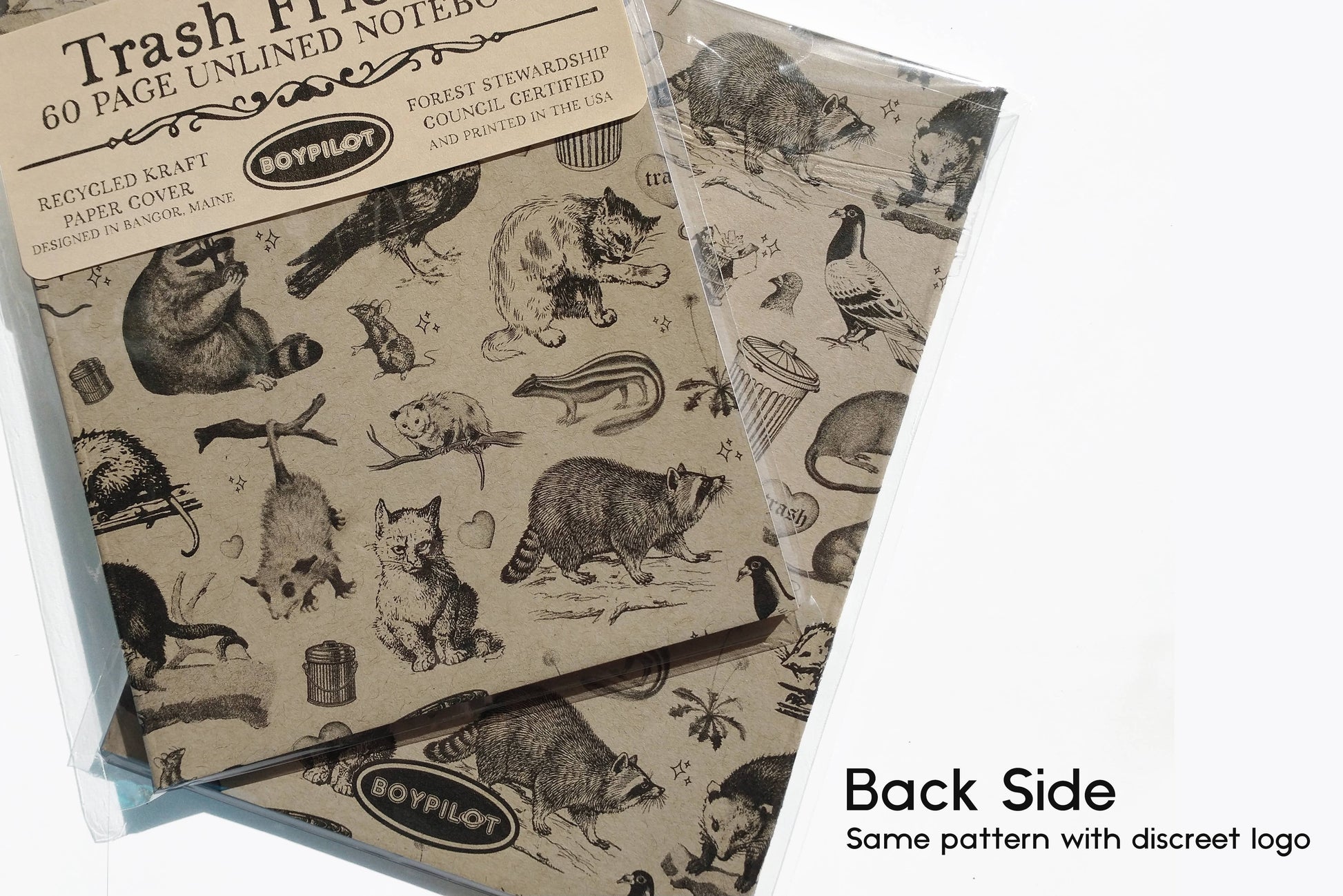Meet your new best friends - the Trash Friends Notebook! With their adorable designs, these notebooks will bring a smile to your face every time you use them. Perfect for jotting down notes and doodles, these notebooks are a fun and functional addition to your stationery collection. (Note: They're also great for impressing your friends with your quirky sense of humor!) Packed in Individual cello sleeve with info sticker. ✔ 30 Sheets / 60 pages ✔ 5" x 7" / 12.7 cm x 17.8 cm ✔ 3/16" thick ✔Staple bound on spine with a square binding profile ✔ Recycled kraft paper cover ✔ Forest Stewardship Council (FSC) certified interior pages.